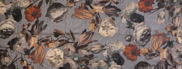 Highfield shawl van 100% Merino wol met dessin “Flower”, kleur On Grey size 70cm x 180cm