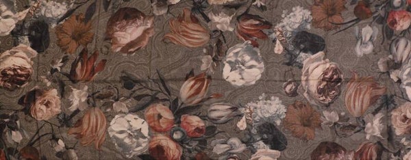 Highfield shawl van 100% Merino wol met dessin “Flower”, kleur On Brown size 70cm x 180cm