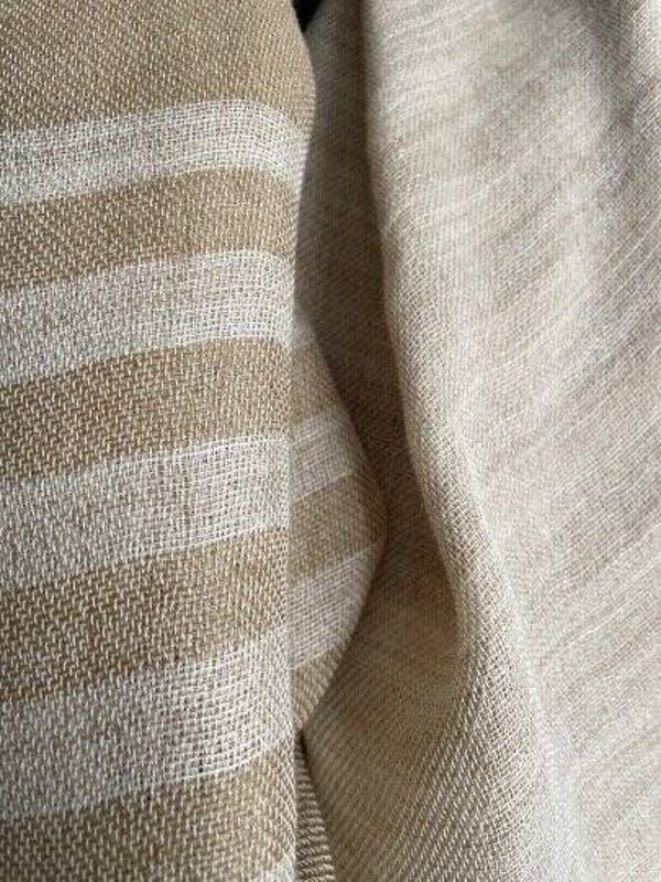 HIGHFIELD SHAWL GEWEVEN STREEP 70CM X 180CM. ZAND-OFFWHITE Code:216