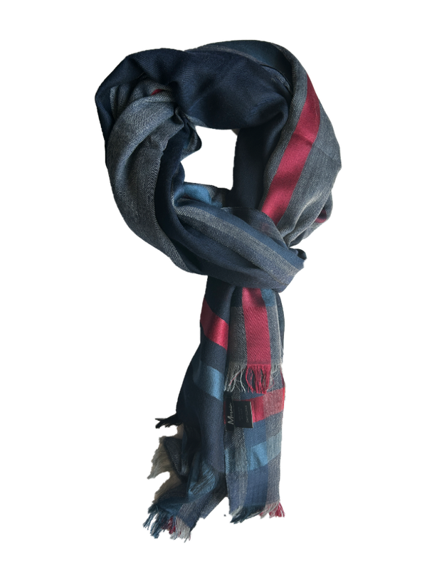92% WOL 8% ZIJDE 70CM X 190CM MULTICOLOUR /NAVY